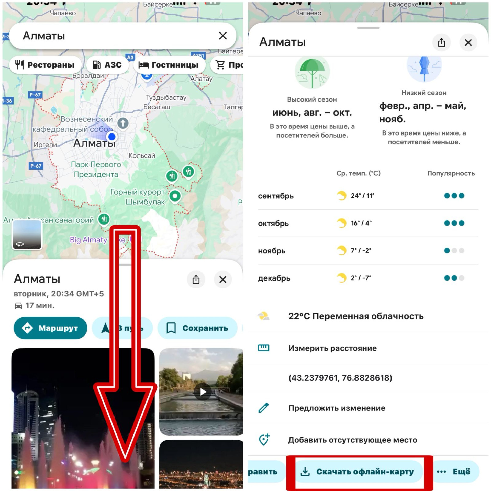 Чтобы загрузить карту для использования без интернета, следуйте инструкциям:
