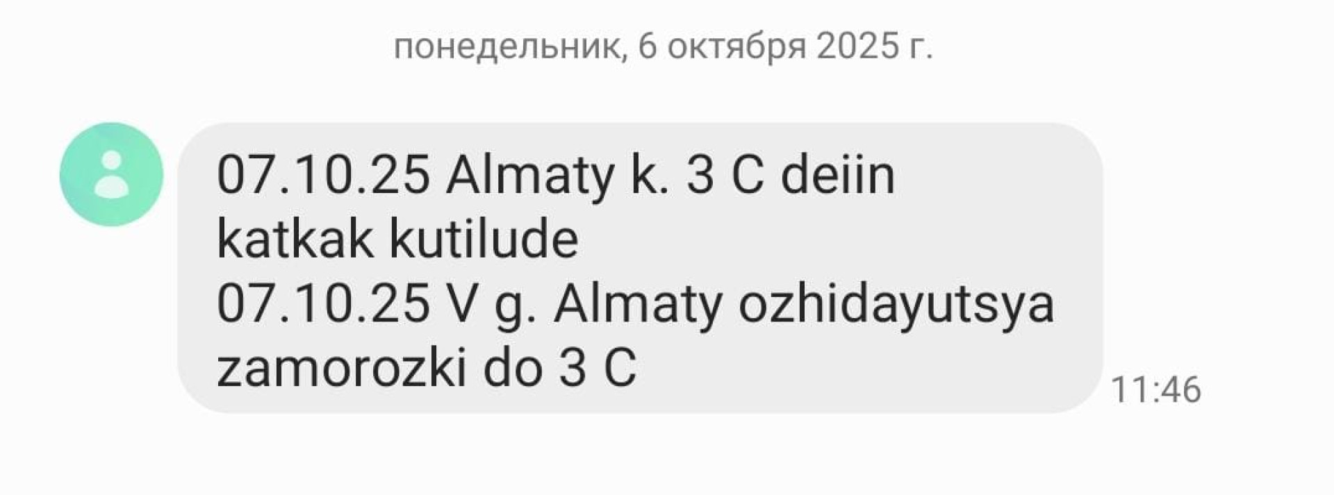 Жители Алматы начали получать SMS-уведомления с предупреждением о предстоящих заморозках.