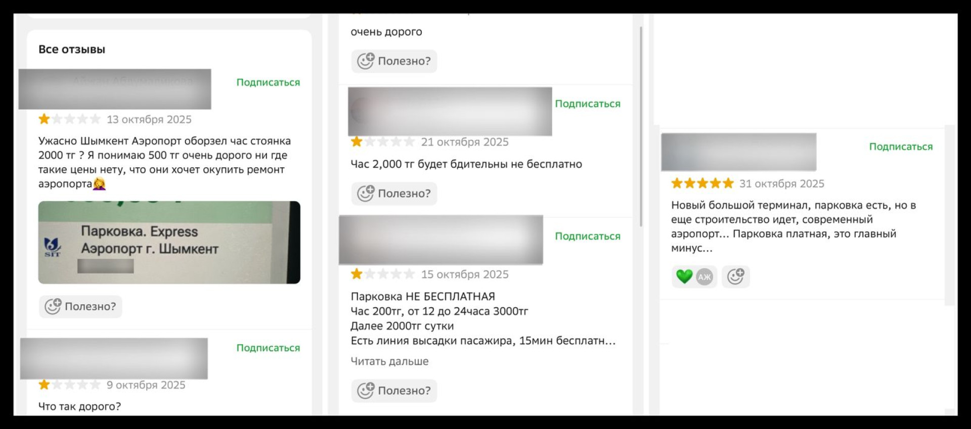 "Аэропорт Шымкента просто в шоке! Час стоянки стоит 2000 тенге! Даже 500 тенге — это уже слишком много. Почему они пытаются окупить ремонт аэропорта за счет водителей?", "Да, новый терминал выглядит современно, но платная парковка — это большой минус!", "Почему такие высокие цены?" — пишут пользователи.