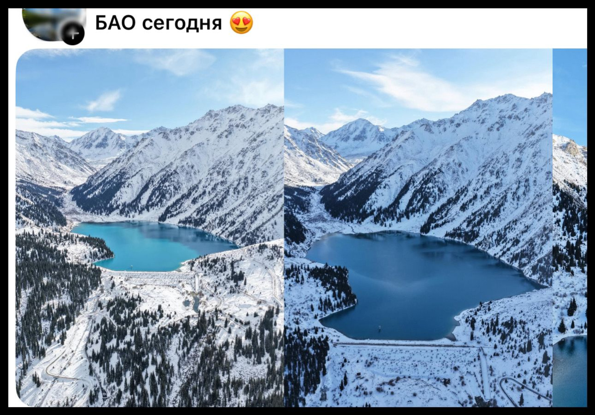 Куаныш поделился своим опытом посещения БАО в зимний период. Он отметил, что в это время года озеро поражает своей тишиной и красотой, хотя температура может быть довольно низкой. Куаныш, который снимает видео в горах как хобби по выходным и работает в банке в будние дни, также предупредил о потенциальных опасностях зимних походов: