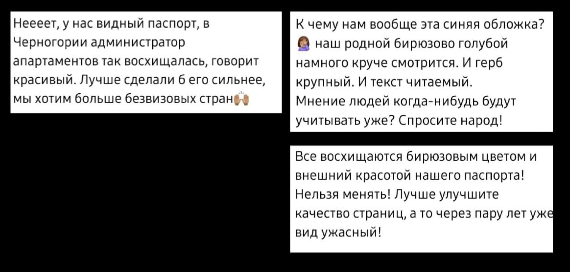Пользователи подчеркивают, что действующий паспорт выделяется среди других, и многие отмечают его привлекательный внешний вид. "Бирюзовый цвет и крупный герб — это наша фишка. Зачем делать очередной синий паспорт, как у всех?" — приводятся мнения комментаторов.