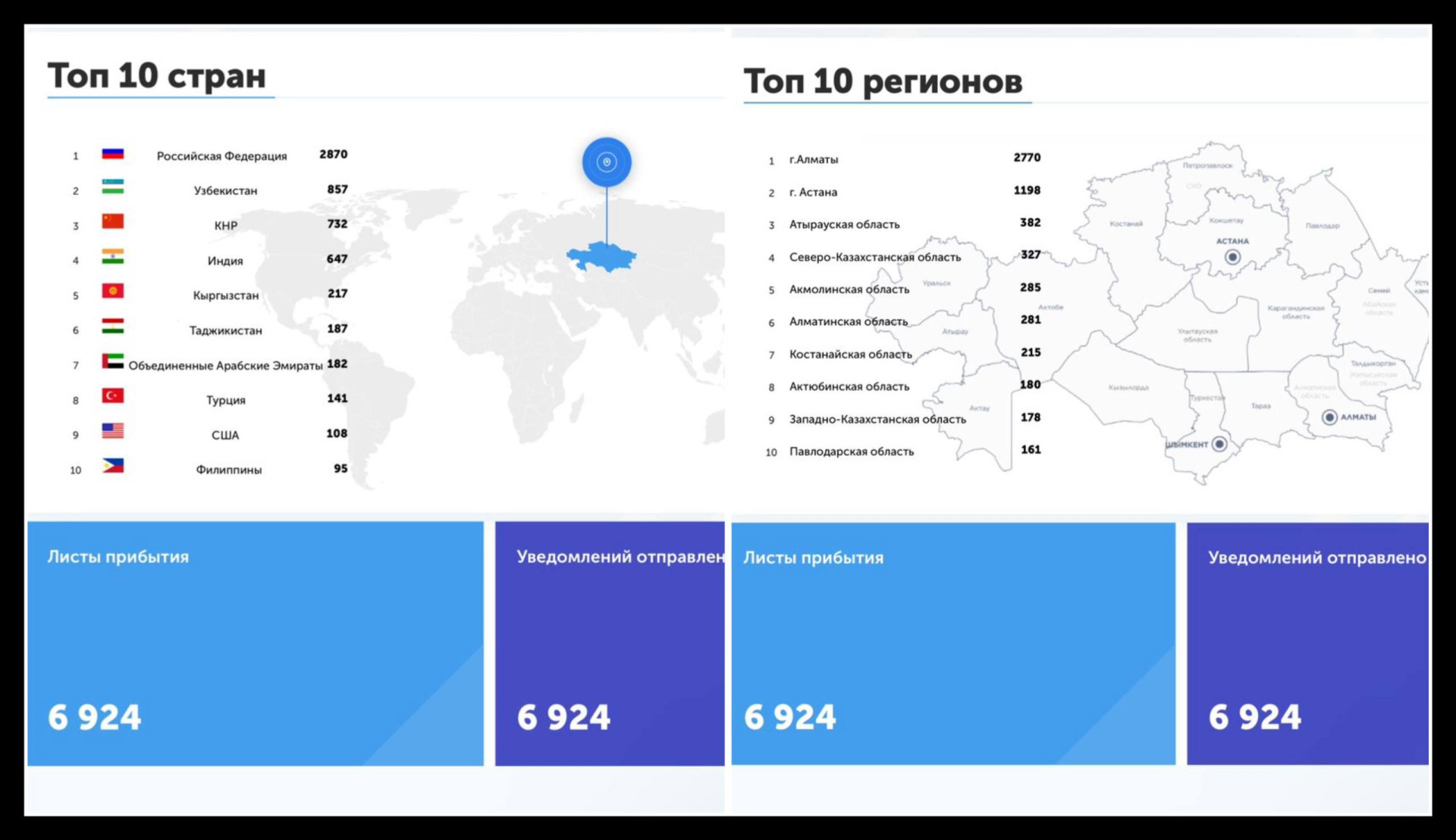 Кроме того, в пятёрку самых посещаемых регионов вошли Атырауская, Северо-Казахстанская и Акмолинская области.