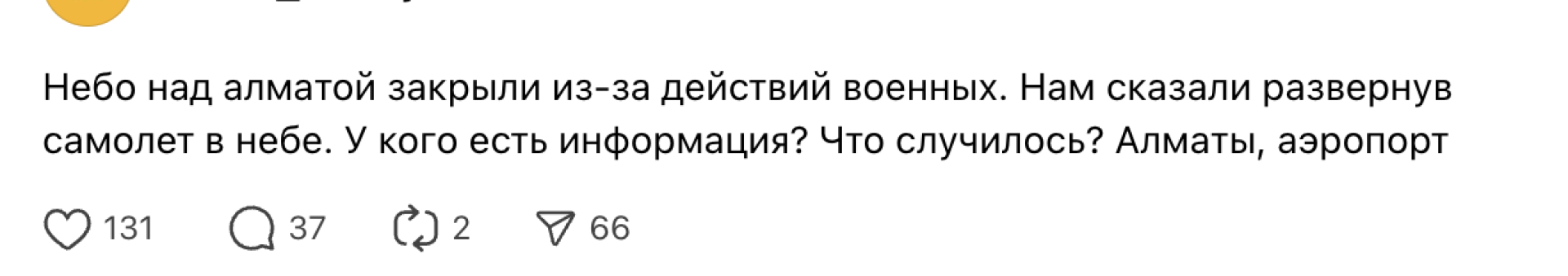 В аэропорту Алматы опровергли слухи о введении "военного положения" и подтвердили, что небо не закрывалось.