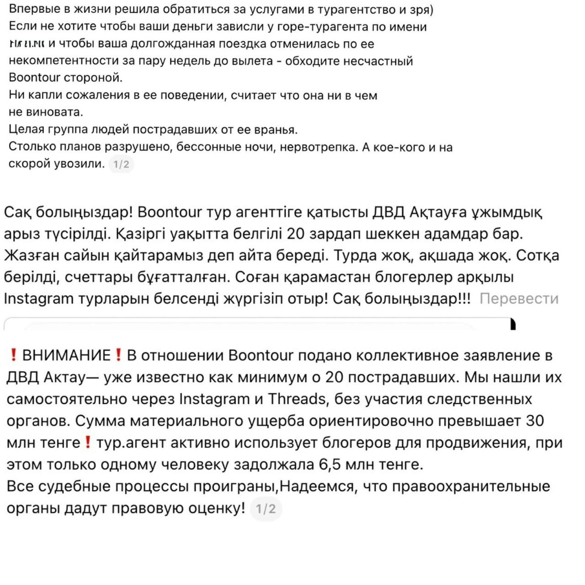В социальных сетях появились сообщения и от других пользователей, столкнувшихся с аналогичными проблемами с Boontour. Многие утверждают, что после оплаты туры отменялись, а возврат средств либо затягивался, либо осуществлялся частично. Некоторые узнали о других пострадавших только после отмены собственных поездок.