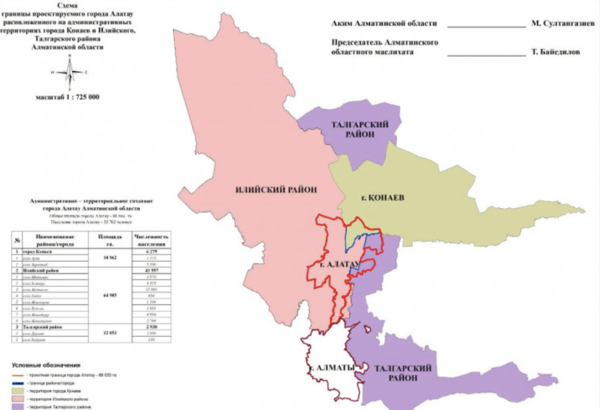 Город Алатау был создан в 2024 году на базе села Жетыген, с одобренным генеральным планом от правительства. Изменены границы Илийского и Талгарского районов, а также города Конаева, и часть территорий теперь входит в состав нового города.